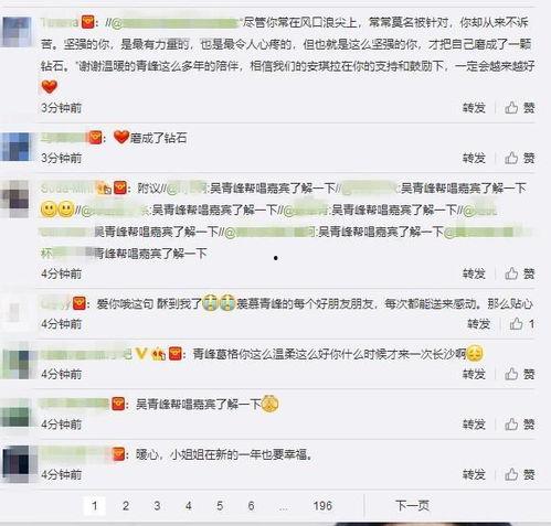 在视频中,吴青峰还与粉丝们进行了互动。他不仅回答了粉丝们的问题,还分享了自己与粉丝之间的温暖瞬间。视频中,一位粉丝向吴青峰表白,让他感动不已。吴青峰表示,自己非常珍惜与粉丝之间的感情,感谢粉丝们一直以来的支持。